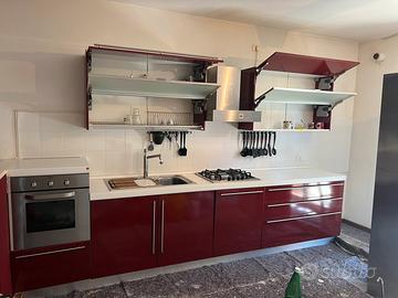 Cucina lineare LUBE 3mt Laccato lucido bordeaux, (completa di colonna forno max 3,60mt) top bianco 8cm 4 pensili 2 chiusi 2 vetro opaco