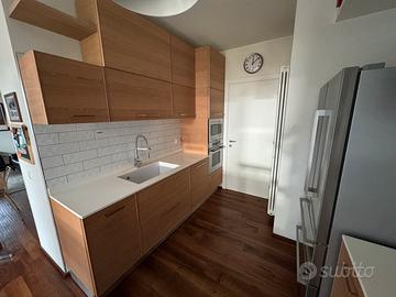 Cucina Lube in legno massello piano completo in Okite, completa di elettrodomesti Smeg, lavastoviglie Bosh nuova un anno di vita, cappa Falmec.