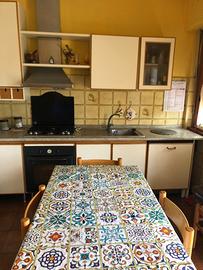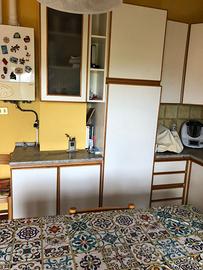 Misure 270x60 cm(lato piano cottura) Misure 190x60 cm (lato caldaia). Cappa,piano cottura,forno incluso.Tavolo allungabile con sei sedie. I mobili si trovano a Matelica (MC).