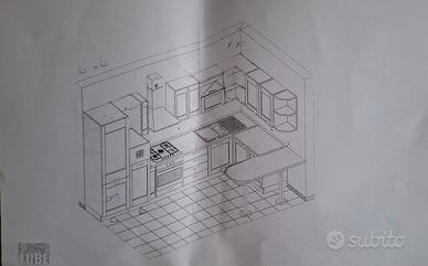 Vendo per cambio modello. Ovviamente non è perfetta, qualche imperfezione c'è tipo, in alcune ante o cassetti, si sta scollando il rivestimento ma si può sistemare, l'ho fatto in altri punti. Penisola con 3 sgabelli. Misure come da progetto. Includo: frigo, forno, piano cottura, lavello e cappa Ariston Hotpoint originali e funzionanti. Prezzo ancora trattabile. Ritiro in loco.