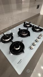 Cucina Lube , composta da 4 metri e 20 lineare di cui la parte superiore è vetro , parte inferiore laccato lucido bianco, top in Okite , gruppo elettrodomestici HOTPOINT ARISTON
