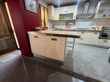 Cucina Lube completa di tavolo e sedie , lavastoviglie e forno Ariston . Lunghezza 3,40 , angolo lavello mt 1,60 e isola 150x80 . Montaggio e trasporto a carico dell’acquirente. Prezzo trattabile