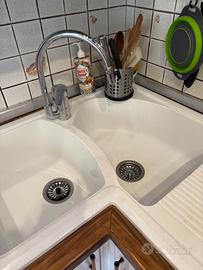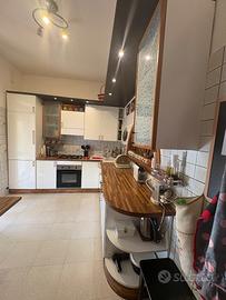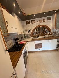 Cucina LUBE, in laminato bianco lucido 2,70 x2,75 alta 2,35 piano in laminato finto parquet alto 4 cm, lavello in resina bianca marca Telma, forno elettrico ventilato +piano cottura in acciaio nero della De Longhi 2 anni di vita entrambi ,4 mensole come il top un tavolo 118x70 più 4 sedie e uno sgabello nere in legno. Prezzo trattabile con disponibilità non prima del 22 Agosto 2025.