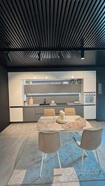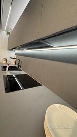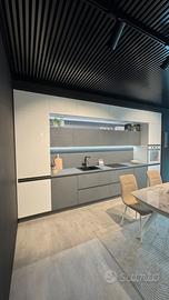 causa rinnovo spazio espositivo SVENDIAMO cucina LUBE modello IMMAGINA DA 420cm sviluppo a ponte, elettrodomestici INDESIT completa di piano estraibile interno, illuminazione LED, porta posate, pattumiera, scolpiatti e schienale stessa finitura del top