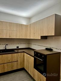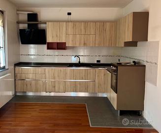 Vendita cucina LUBE anno 2021, in buone condizioni. Misure: 330cmx220cm. Elettrodomestici marca SMEG (piano induzione 4 fuochi con relativa cappa aspirante, lavastoviglie, forno), top in quarzo resistente e lavello nero da 70cm.