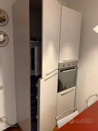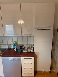 Vendo cucina Lube bianca, ottime condizioni, anno 2016, usata poco, completa di tavolo 4 sedie, cappa, carrelli angolari girevoli attrezzati. esclusi elettrodomestici.
