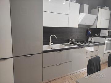 cucina stosa 4 metri con piano cottura, cappa e forno in vetro.