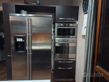 Veneta Cucine , penisola con piano cottura , canoa sospesa, frigo General Elettric , forno digitale smeg ,microonde Hotpoint, lavello doppio smeg , lavastoviglie Bosh con zeolite , color Wengè ,pianale bianco .