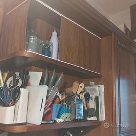-vetrina da 40 e cassettiera 45 cm in alto due mensolone in noce alte 4 cm