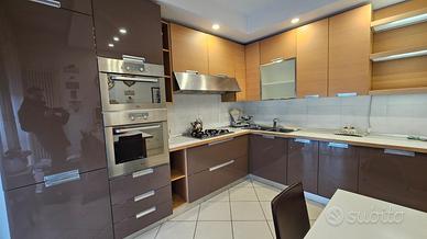 Ampia cucina angolo laccata lucida con penisola buone condizioni con elettrodomestici forno + forno microonde colonna frigo e freezer cappa piano cottura gas