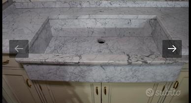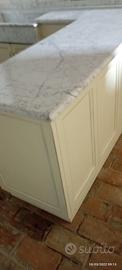 Penisola, ripiani e lavabo in vero marmo. Legno massello e blocco cottura elettrico combinato.