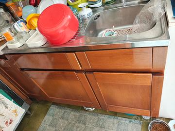 vendo cucina componibile con ante in legno 2 pensili L60xP30xH60 4 pensili L45xP30xH60 scolapiatti L90xP30xH50 1 pensile angolo H60xP60 lavello acciaio inox rex 1 vasca con sgocciolatoio a sinistra con sotto lavello : cassetto, mobile e mobile L105xH90xP60 base con tavolino estraibile e mobile H90xL50xP60 cassettiera H90XL45XP60 2 base ad angolo H90XL60XP60 1 base H90xL30xP60 cappa con mobiletto L90xH50 visionabile a marina di carrara disponibile da fine maggio
