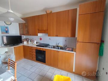 Cucina completa di piano cottura a gas, forno e frigo, ottimo stato. Il tavolo e le sedie non sono in vendita.