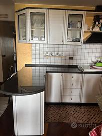 Vendo cucina con 3 angoli con marmo nero e sportelli bianco/nero. Esclusi elettrodomestici!
