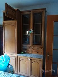 Cucina completa di forno e lavabo, tavolo in marmo completo di 6 sedie e vetrina con vano frigo.