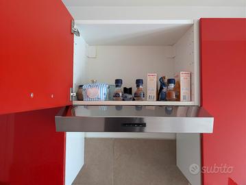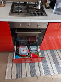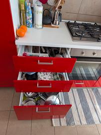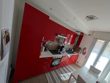 Vendo cucina completa moderna di colore rosso lucido, composta da mobili alti e bassi, pensili, cassettiere, piano di lavoro, lavello, cappa, frigorifero, forno e piano cottura a gas. La cucina è ancora funzionante e in buono stato generale. Il frigorifero è in buono stato e funziona bene. Forno e piano cottura sono funzionanti, ma presentano normali segni di usura dovuti all’utilizzo. Molto capiente, con numerosi vani contenitori, cassetti e pensili. Ideale per appartamento, seconda casa, affitto o soluzione economica ma completa. Incluso: colonne e pensili cassetti e basi frigorifero forno piano cottura a gas cappa aspirante lavello Ritiro, smontaggio e trasporto a carico dell’acquirente.