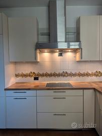 Include piastra induzione, cappa, forno combinato con microonde, lavello Franke con miscelatore Grohe.