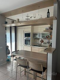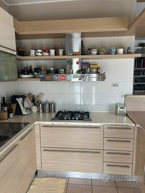 Cucina angolare, LUBE, laccata lucida e rovere, come nuova.