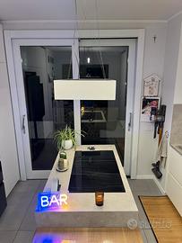 Isola 138x80 cm con piano cottura e forno da 90 cm, cassetto carrello, cassetto posate e 2 antine porta bicchieri. Inclusa cappa filtrante sospesa 90x49 cm. Diponibile da circa metà maggio.