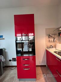 Cucina moderna compatta con finitura lucida rosso/bianco.