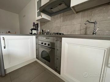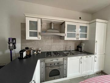 Cucina Gatto usata in ottime condizioni, vendita causa trasloco . Misure m. 3,20 bianca laccata con inserti particolari in peltro con lavastoviglie , frigo, forno e piano cottura a gas.