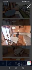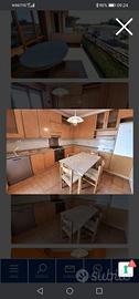 vendo cucina in legno con piano in marmo in buonissimo stato, completa di lavastoviglie, forno, fornello e frigorifero semi nuovi, tavolo con quattro sedie