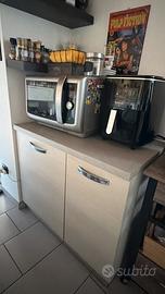 Cucina Mondo Convenienza vendo con elettrodomestici funzionanti inclusi (forno ventilato, frigo, freezer e lavastoviglie). Qualche piccolo segno di usura. Unico difetto visivo, angolo dell’anta sotto al lavabo scheggiata ma sostituibile con altra anta. Misure cm 330 lunghezza. Prof cm60. In aggiunta anche altro blocco con pianale e due ante da 1 metro di larghezza. Ritiro e smontaggio a cura acquirente. Data ritiro 18/19/20 maggio per consegna cucina nuova.
