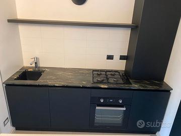 Vendo cucina lineare su misura ( 2 ,365 metri). Ante in melaminico tecnico Super Matt, top in marmo/pietra, elettrodomestici inclusi :lavastoviglie Electrolux, forno Silverline, piano cottura Electrolux. Smontaggio e trasporto a carico dell'acquirente. Disponibile per visione