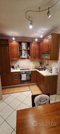 cucina in ciliegio, non incluso forno lavastoviglie e frigo che tengo io. Lascio vetro ceramica, e cappa come elettrodomestici . Smontaggio e trasporto a carico vostro. tenuta molto bene. Faretti sopra pensili e luce neon sopra lavello.