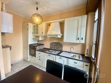 Cucina usata completa di elettrodomestici: frigo, freezer, forno, lavastoviglie, piano cottura, lavabo, pensili, cappa aspirante, cassetti e vani con anta. Misura lunghezza 4,20 m circa, profondità 60 cm. Si trova al primo piano rialzato senza ascensore, solo ritiro a mano, smontaggio a carico dell' acquirente.
