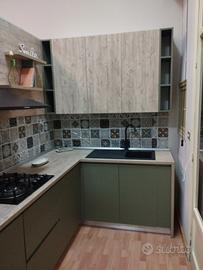 Purtroppo le foto non sono granché a causa del locale troppo stretto, è una cucina nuova tenuta solo in esposizione si possono adattare piano cottura e lavello di vari tipi e misure, completa di lavastoviglie.