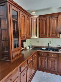 Mobile cucina in legno di noce con piano induzione forno elettrico frigo e congelatore .mobile TV sempre in legno di noce.