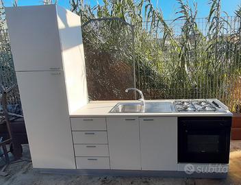 Cucina completa di elettrodomestici funzionanti,poco usati, con pensili e cappa aspirante, larghezza 252 cm altezza 210 cm