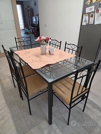 Tavolo con sedie in ferro con piano in vetro temperato 6 mm per 6 pax.