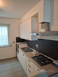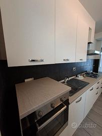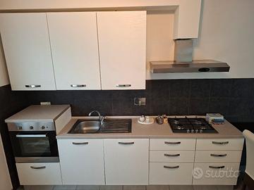 Vendo cucina completa moderna in ottime condizioni, colore bianco lucido con top effetto pietra chiaro e schienale nero elegante. Design lineare e funzionale, ideale per appartamento, seconda casa o investimento. Misure totali: Lunghezza: 3,00 m Altezza: 0,90 m Profondità: 0,60 m Composta da: Pensili capienti Base con cassetti e ante Lavello con gocciolatoio Piano cottura 4 fuochi Forno da incasso Cappa aspirante inox Cucina ben tenuta, pronta da montare e utilizzare. Prezzo richiesto: €600 Smontaggio e trasporto da concordare. Per informazioni o altre foto contattami in privato.