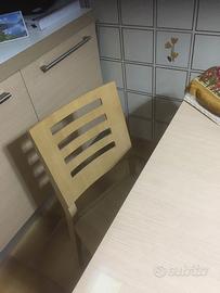 Cucina lineare moderna completa di elettrodomestici REX , frigo combinato 3 cassetti x surgelati ,forno multifunzione ,piano cottura 5 fuochi ,lavello doppio in acciaio Inox,3 mobili con ampi cassetti e luce neon all’apertura ,un mobile con 2 ante , 6 pensili molto grandi. Il piano della cucina è di colore bianco , la cucina è colore rovere . Un tavolo misura cm. 1,40 x 91. 4 sedie sempre rovere