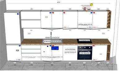 Cucina moderna completa – mai usata! Lunghezza: 425 cm Marca: Selly by Mondo Convenienza Finitura: Bianco opaco Top: Rovere chiaro Maniglie: A gola (design pulito ed elegante) Elettrodomestici inclusi: •Lavastoviglie Hotpoint •Cappa aspirante Elica •Piano a induzione e forno Candy •Comprara a marzo 2025! La cucina è già smontata. Ritiro a carico dell’acquirente. Si trova a Santa Maria Nuova Spallicci di Bertinoro (FC). Prezzo: €3.300 PS. La cucina è composta da moduli standard da 60 e 90 cm, quindi è possibile disporli in modo differente a seconda delle esigenze. Naturalmente, se gli attacchi (acqua e scarichi) sono molto distanti rispetto alla posizione dei moduli e non possono essere spostati, la cucina può comunque essere adattata con un piano di lavoro su misura che tenga conto della disposizione esistente.