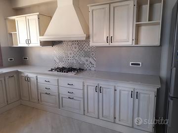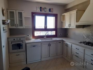 Meravigliosa Cucina moderna colore avorio, completa di tutti gli elettrodomesticie lavastoviglie perfette condizioni forno e piano cottura Ariston, lavastoviglie Miele, top in marmo al quarzo. Possibilità di consegna e montaggio