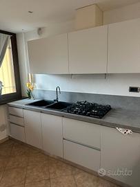 cucina moderna , componibile , colore grigio e bianca , con penisola più sgabello., compresa di frigo holpoint lt 60,lavello 2 vasche granitek nero, pianocottura samsung vetro nero griglie ghisa , 4 fuochi, miscelatore cromato