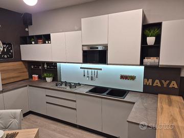 Stupenda cucina Maya di E.V.O. cucine,m.l. 9.20 ,5 elettrodomestici, p.c. vetro, fr da 75, micro, il tutto della whirpool.La cucina e' nuova ( si trova ancora in negozio ).La cucina e' modificabile, volendo si puo' aggiungere un'isola. Per vederla, per preventivi, o ulteriori informazioni ,contattateci pute al 331 491 2850 ( meglio de du whstdsp)