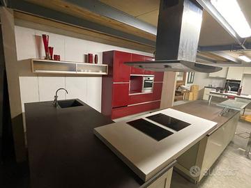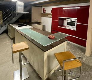 CUCINA CON COLONNE ROSSE 210x240x60+ISOLA A L 107x417x252
