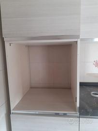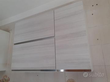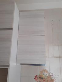 Vendo cucina completa dal design moderno e pulito, Misure: 3 metri (240cm, + 60cm il vano forno) Profondità 60cm E una lineare con pensili a doppia altezza e colonna forno. La cucina presenta una finitura effetto legno (grigio chiaro/bianco) con maniglie in alluminio. Elettrodomestici inclusi: Piano cottura a gas 4 fuochi in acciaio inoxcon cappa anche se non in foto, lavello e lavastoviglie. Ha un piano di lavoro scuro effetto pietra/marmo. Praticamente nuova usata poco, vendo per cambio La il vano è standard e pronto per l'incasso. Ritiro e smontaggio a carico dell'acquirente a Barletta.