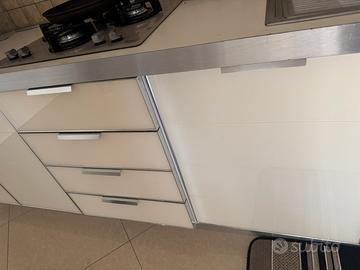 Vendo causa trasloco imminente, Cucina marca Stosa usata ma in ottime condizioni,A vetro colori nero sopra e beige sotto, senza elettrodomestici, senza cappa e lavandino. Mobile sopra il lavello con cerniere a 180°, con scolapiatti e mensola in vetro superiore.altri due mobili con 3 mensole di cui una in legno e due a vetro. Compreso nel prezzo cassettone con anta ribalta di misura 90 cm e altezza 45 da utilizzare in abbinamento sopra un mobile TV prezzo 1500 € trattabili luogo in cui si trova la cucina e' Cutro. Smontaggio a carico dell'acquirente, altre soluzioni da concordare. Volendo per chi è interessato, vi è anche un tavolo sempre a vetro colore nero misure 180 × 90 apribile fino a 230.Sedie non comprese.