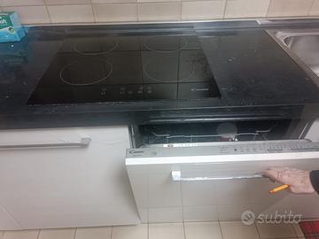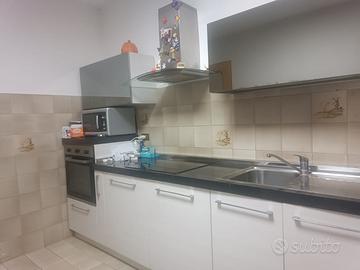 Cucina componibile laccata bianca e nera con pensili a specchio. -piano a induzione -forno elettrico e cappa -lavastoviglie Lunghezza totale: 390 cm Per qualsiasi info contattare Roberto al numero di telefono: 3477950411