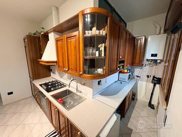 Zona cottura lunga 330cm con pensili, area di lavoro lunga 210cm con pensili e base isolata da 90cm con vetrinetta da 250cm. Il piano top è nuovo. SENZA ELETTRODOMESTICI Disponibile da inizio/metà Maggio, smontaggio e trasporto a carico dell’acquirente. Visibile anche prima della data del ritiro. Alessandro 3470108569 Terranegra di Legnago