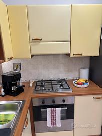Vendo cucina angolare compresa di piano cottura a gas indesit, cappa e forno perfettamente funzionanti. La cucina è in ottimo stato di conservazione e misura 208 cm (lato del lavello) per 163 cm (lato del piano cottura). I pensili sono mensolati e molto capienti.
