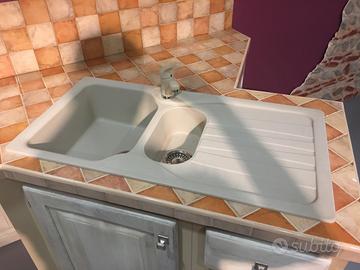 completa di: cappa, tendine, 3 faretti, bancone, 2 sgabelli