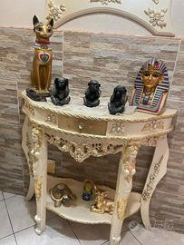Vendo cucina modello Versace completa di tavola e sedie divano entrata 3 lampadari orologio cornice tv 65 pollici credenza porta ombrelli cassonetto per tenda vicino al balcone e statue in oro al prezzo di 4.000€