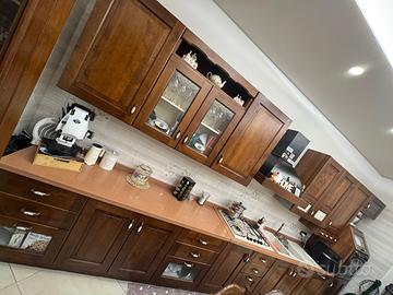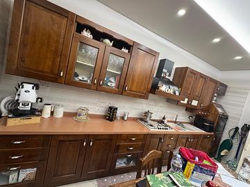 Cucina in legno completa di forno lavello e piano cottura 5fuochi con ripiano in okite lunghezza 5metri e 10 x 60 di profondita vero affare