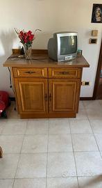 vendo cucina DEL TONGO completa come in foto ,buono stato completa di sedie e tavolo e porta tv. misure cucina parte del frigo ml 2,70 altra parte 2,60 ml porta tv 1m Smontaggio e trasporto a carico del compratore.